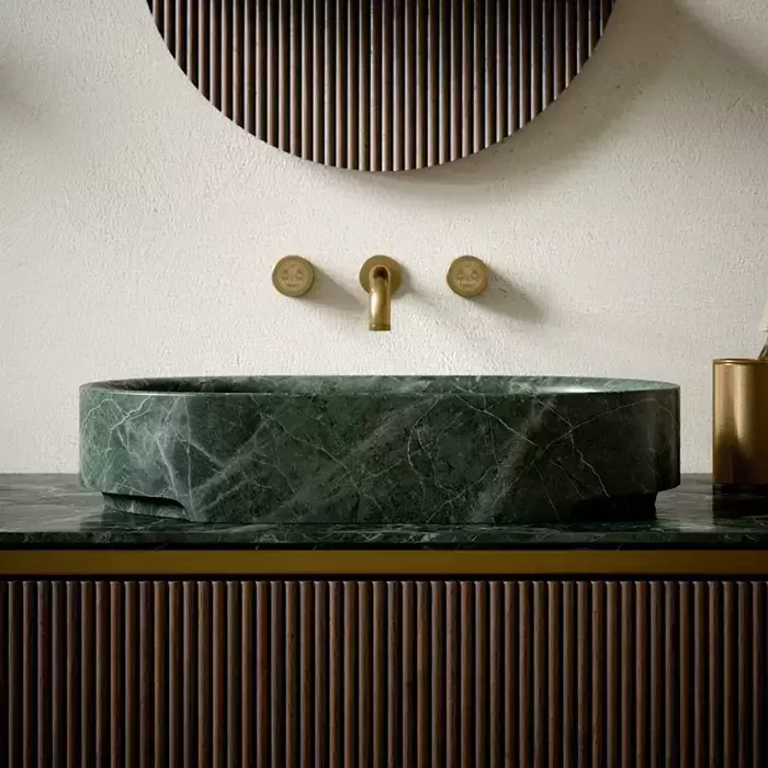 Oasis Naos Композиция №1 Комплект мебели 236х56xh32см, подвесной, мраморный топ verde alp, цвет: золото матовое/орех трубчатый