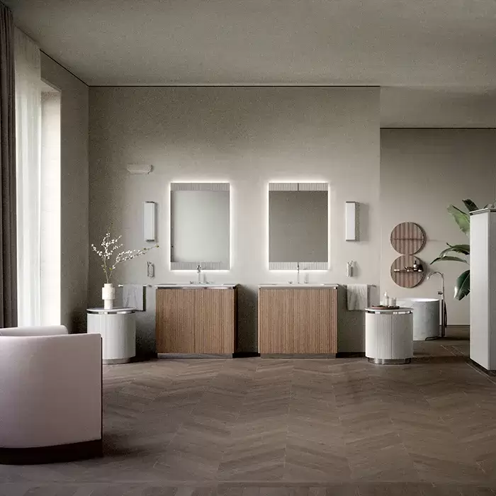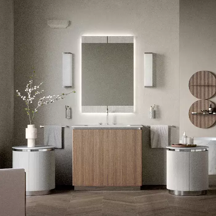 Oasis Naos Композиция №14 Комплект мебели 95х56xh85см, напольный, мраморный топ bianco carrara, цвет: орех трубчатый/хром