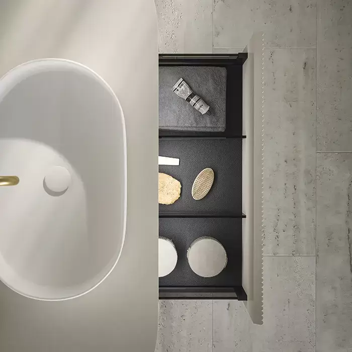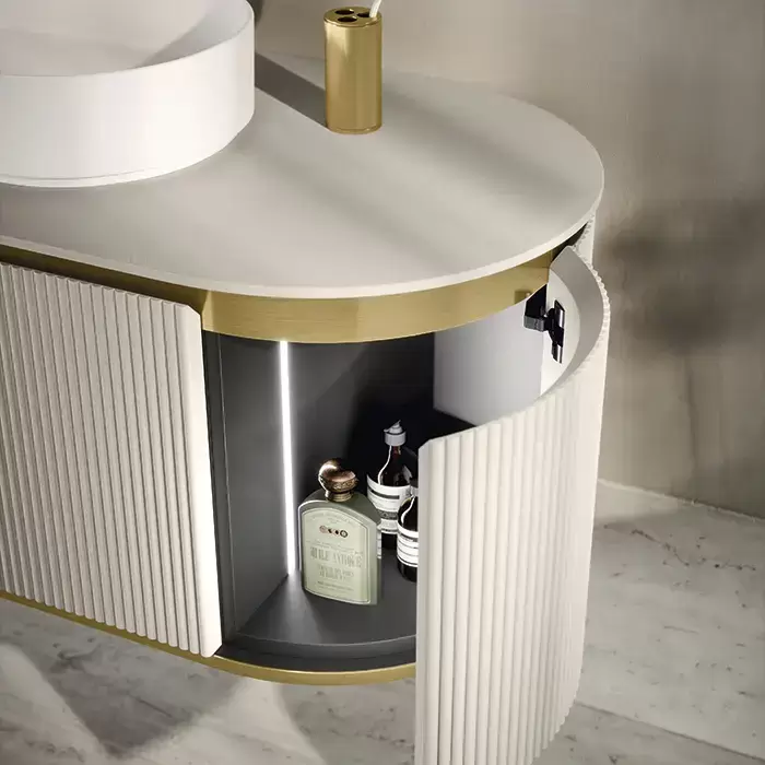 Oasis Naos Композиция №6 Комплект мебели 80х56xh45см, подвесной, мраморный топ, фурнитура латунь, зеркало, цвет: Corda elegance