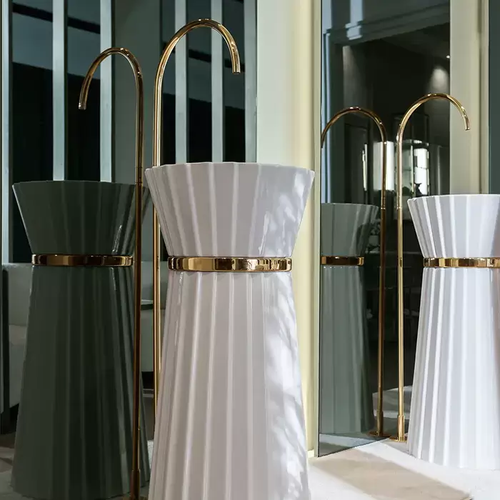 Oasis Plissè Раковина 44x95 см, без отв., с донным клапаном и сифоном, цвет: золото/белый