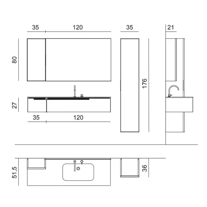 Oasis Profilo Композиция №06 Комплект мебели 155х51.5х h200см., подвесной, цвет: Mint/белый/хром