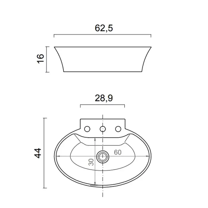 Oasis Раковина накладная, 62.5х44см., с 3 отв., цвет: белый