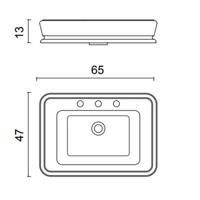 Oasis Раковина накладная, 65х47см., с 3 отв., цвет: белый