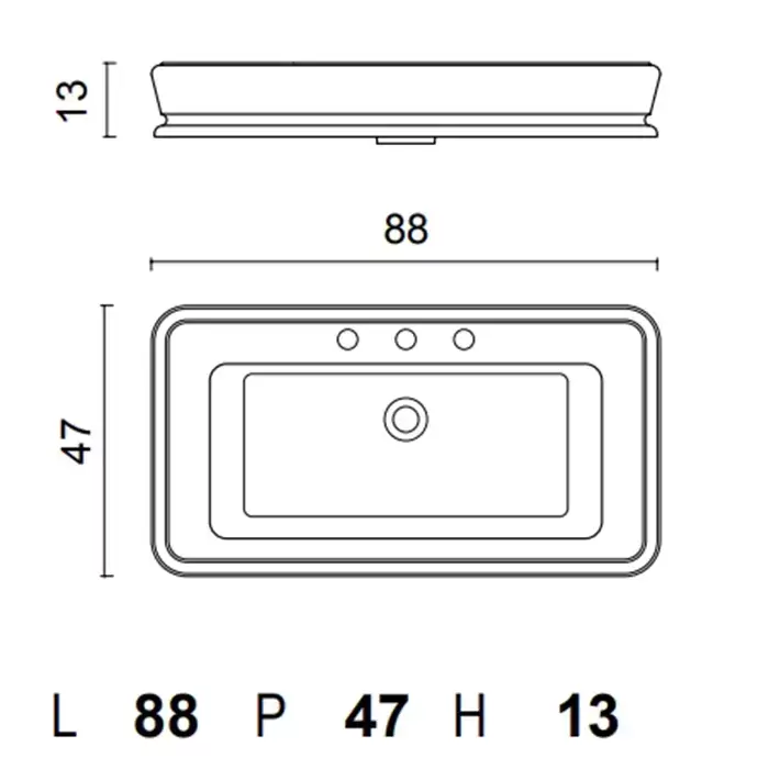 Oasis Раковина накладная, 88х47см., с 3 отв., цвет: белый