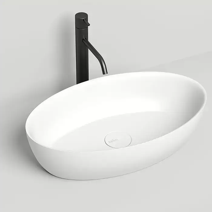 Salini Alda Раковина накладная 58х35х15cм, без отв., без перелива, S-Stone, цвет: белый матовый