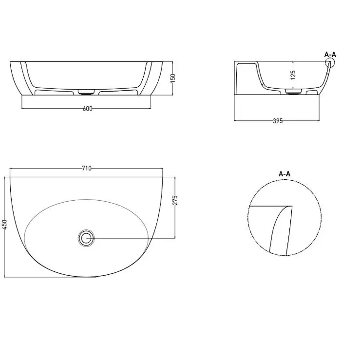 Salini Alda Wall 03 Раковина 60х71х15см., накладная, 1 отв., S-Sense, цвет: белый