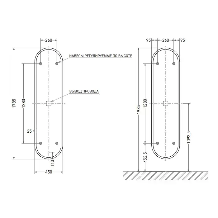 Salini Armonia Зеркало для ванны 45х178.5х2.5см., фоновая и фронтальная подсветка 3в1, сенсорный выключатель, крепления, без подогрева