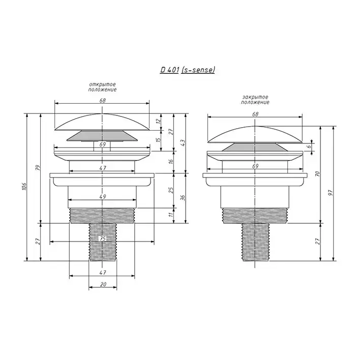Salini D401 Донный клапан для ванны "Up&Down", S-Sense, цвет: белый матовый