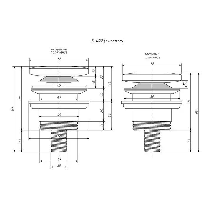 Salini D402 Донный клапан для ванны "Up&Down", S-Sense, цвет: белый глянцевый