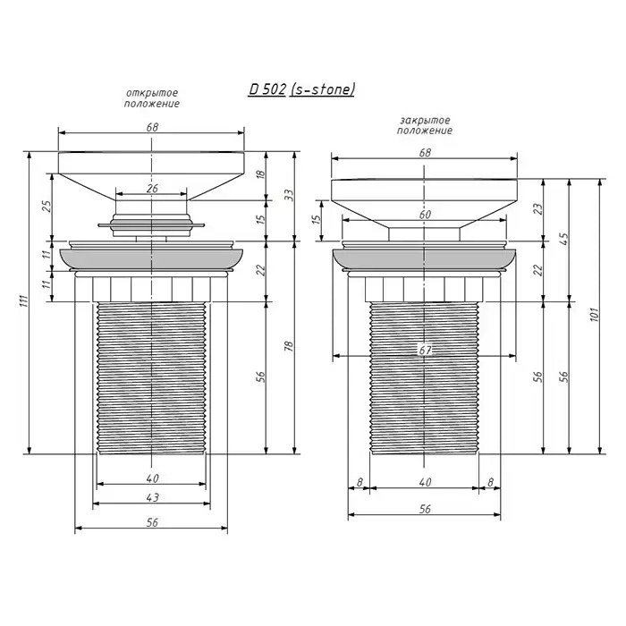 Salini D502 Донный клапан для раковины "Up&Down", S-Stone, цвет: белый матовый