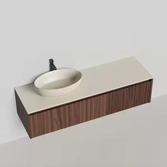 Salini Domino Тумба с накладной раковиной, 160х50х40см., из S-Stone в сборе, крепеж; сифон; фасад: шпон орех, столешница: Ral9001