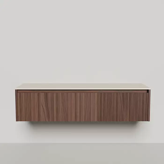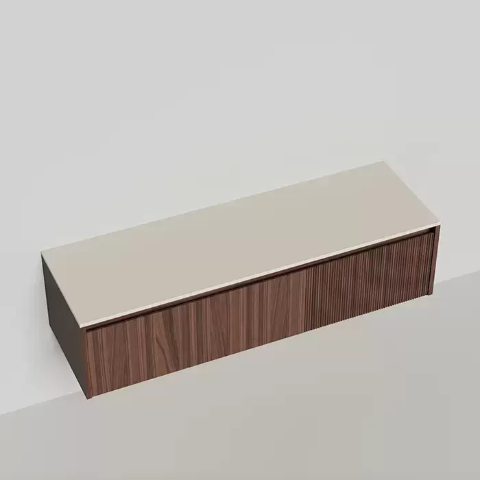 Salini Domino Тумба со столешницей, 160х50х40см., из S-Stone в сборе, крепеж; сифон; фасад: шпон орех, столешница: Ral9001