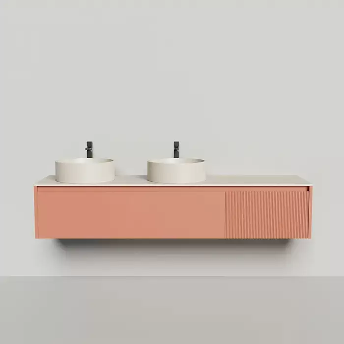 Salini Domino Тумба со столешницей и двумя раковинами, 200х50х40см., из S-Stone в сборе; крепеж; металл/ сифон; фасад Ral3012, столешница: Ral9001