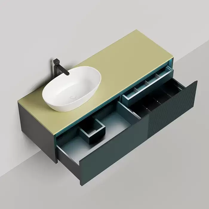 Salini Domino Тумба со столешницей и накладной раковиной, 140х50х40см., из S-Stone в сборе, крепеж; сифон; фасад: эмаль Ral6004, столешница: Ral1000