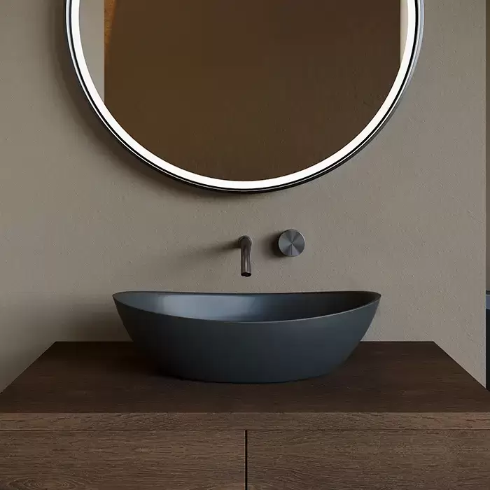 Salini Noemi Раковина накладная 56х34х15см, без отв., без перелива, мат-л: S-Stone, цвет: RAL9011 матовый