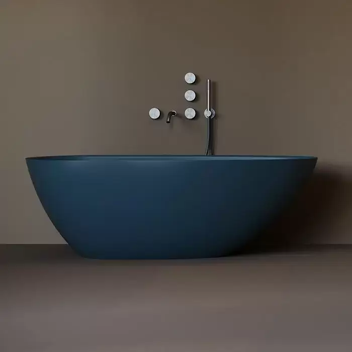 Salini Paola Ванна отдельностоящая 172х82х60см, донный клапан "Up&Down", сифон, слив-перелив, материал: S-Stone, цвет: Ocean blue
