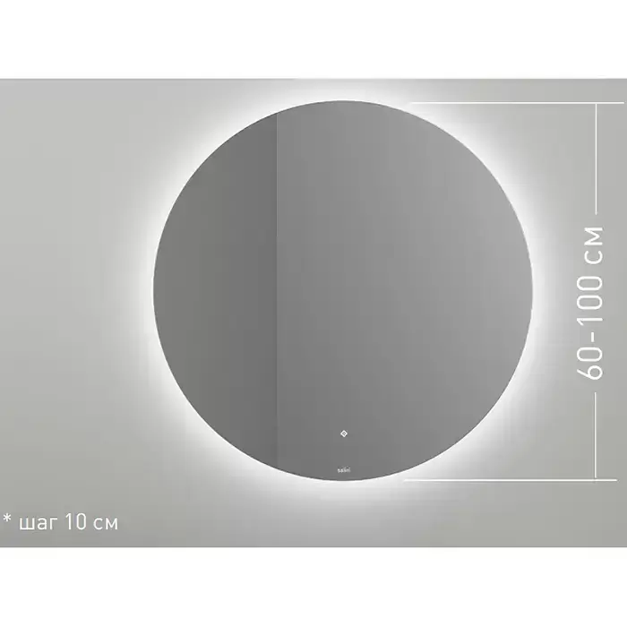 Salini Зеркало для ванны OMBRA 70х2.5см., круглое, с LED подсветкой, влагостойкое AGC Сrystalvision, сенс. выкл., крепления, обогрев, антизапот.