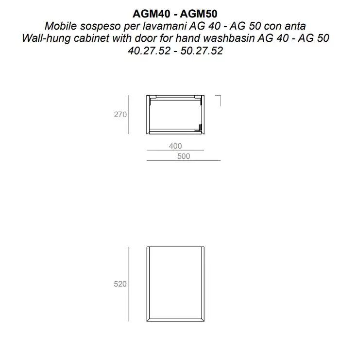 SIMAS AGILE Тумба подвесная 50x27xh51 см, для раковины AG50, 1 дверца, цвет: белый матовый / barrique
