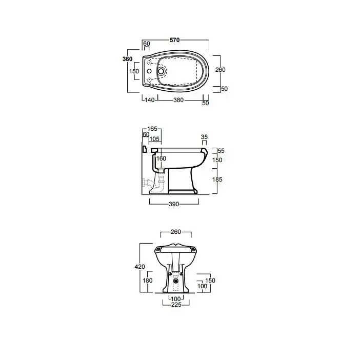SIMAS Arcade Биде с ободком напольное 36х57см с 1 отв. под смеситель, цвет: белый