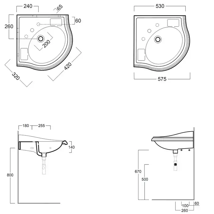 SIMAS Arcade Раковина 57.5х57.5 см, 3 отв., цвет: белый