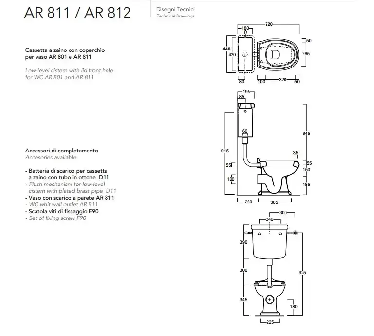 SIMAS Arcade Унитаз 36,5х55см, со средним бачком с боковой ручкой бронза, выпуск в стену, цвет: белый