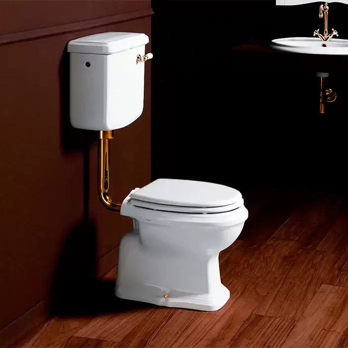 SIMAS Arcade Унитаз 47х36см, со средним бачком с передней ручкой золото, выпуск в стену, цвет белый