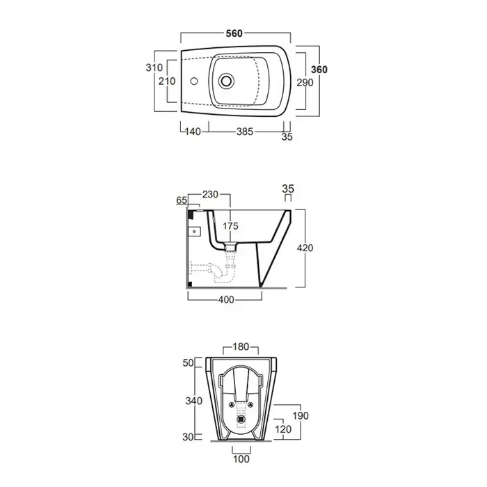 Simas Baden Baden Биде приставное 56х36 см, с 1 отв под смеситель, цвет: белый