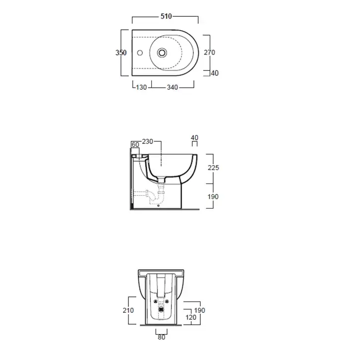 SIMAS E-LINE Биде напольное приставное 51х35см, цвет: белый