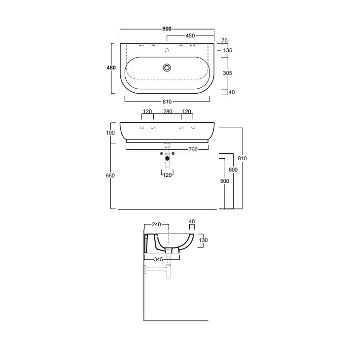SIMAS E-LINE Раковина 90х48 см, без отв., цвет: белый