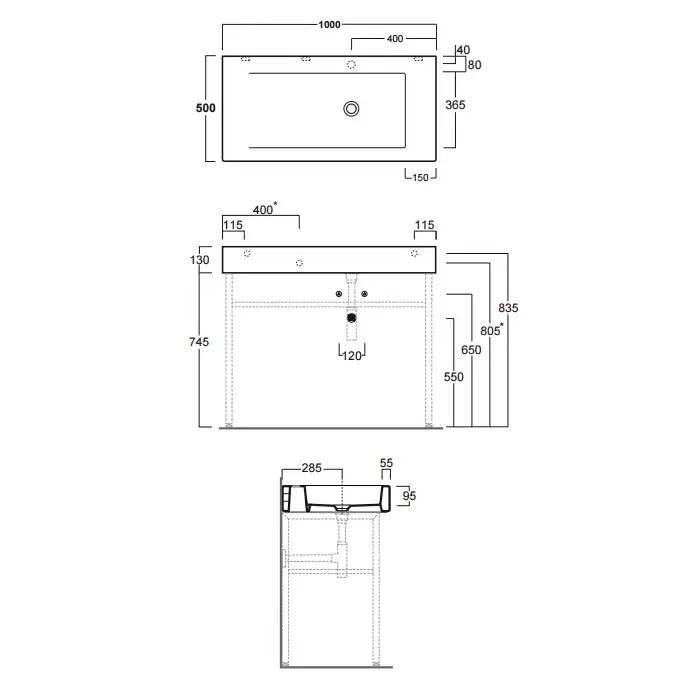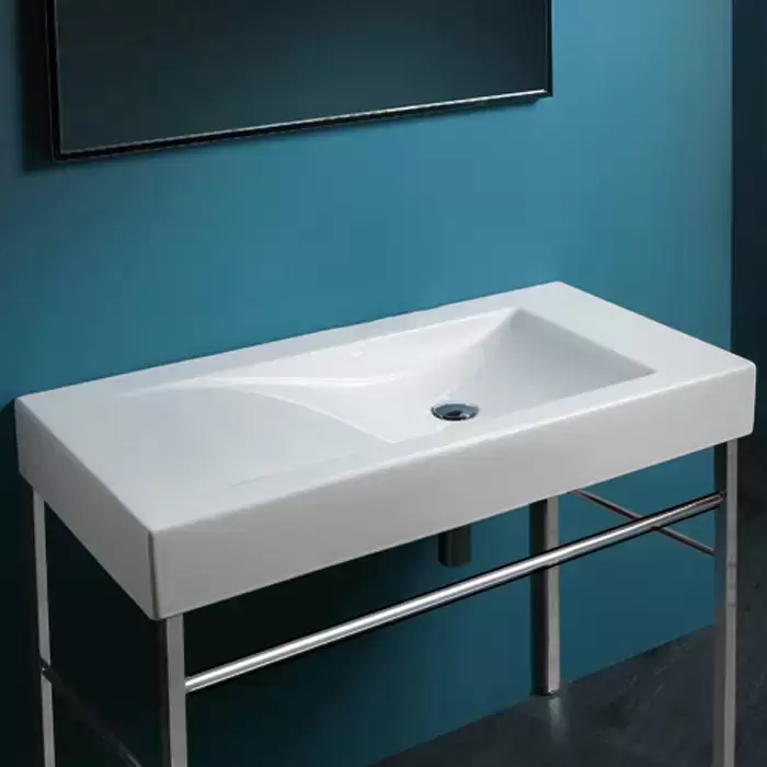 SIMAS Frozen Консоль с раковиной 100х50см с без отв. под смеситель, напольная, цвет: белый/хром