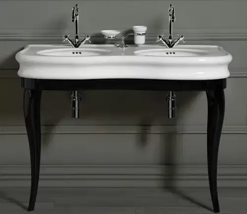 SIMAS Lante Комплект мебели, консоль 111х50.4см, с двойной раковиной на 2 отв., зеркало овальное, напольный, цвет: черный