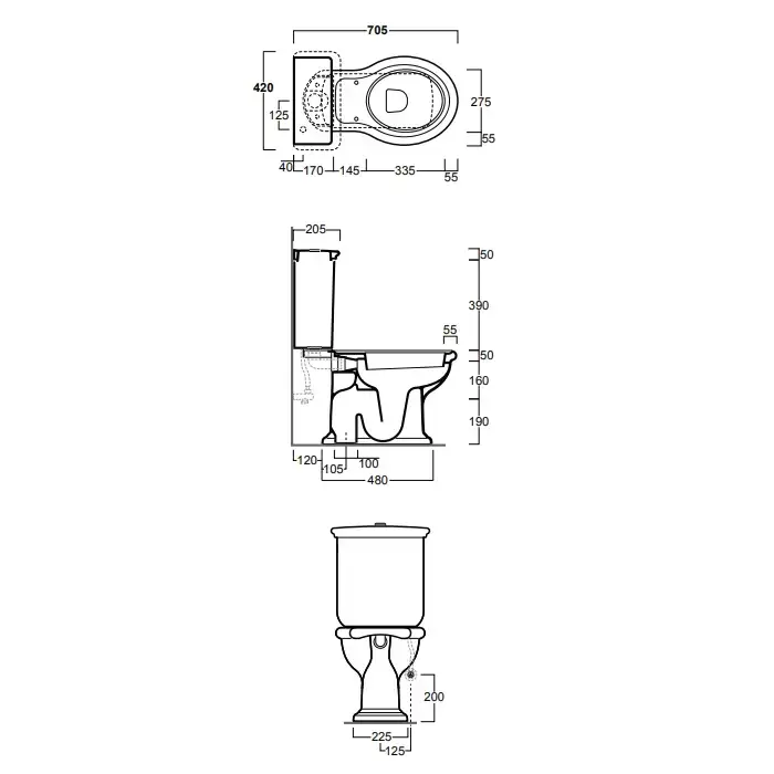 SIMAS Lante Унитаз моноблок 70.5х38.5см, с вертикальным сливом с бачком с кнопкой смыва, фурнитура бронза, цвет: белый