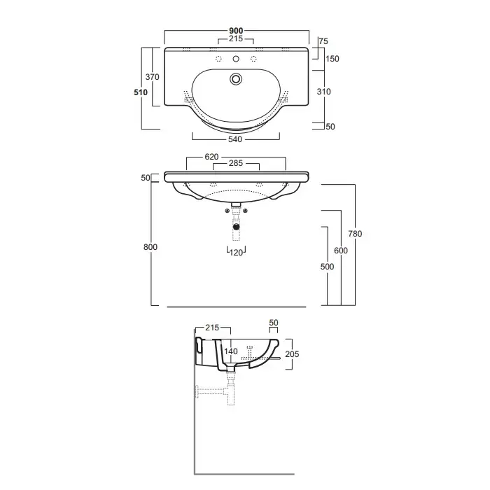 SIMAS Top e lavabi d'arredo Раковина-консоль 90 см, 1 отв., цвет: белый