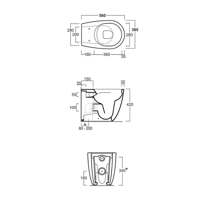 Simas Vignoni Унитаз приставной 56х36.5см., Rimless, с универсальным сливом, цвет: Tela matt