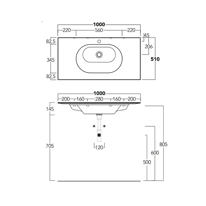 SIMAS WAVE Раковина на столешницу 100x50xh14.5 см, с 1 отв., цвет: белый