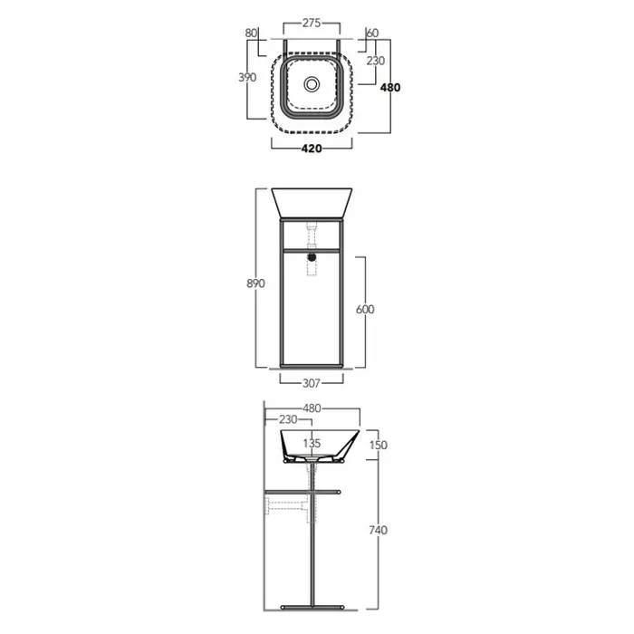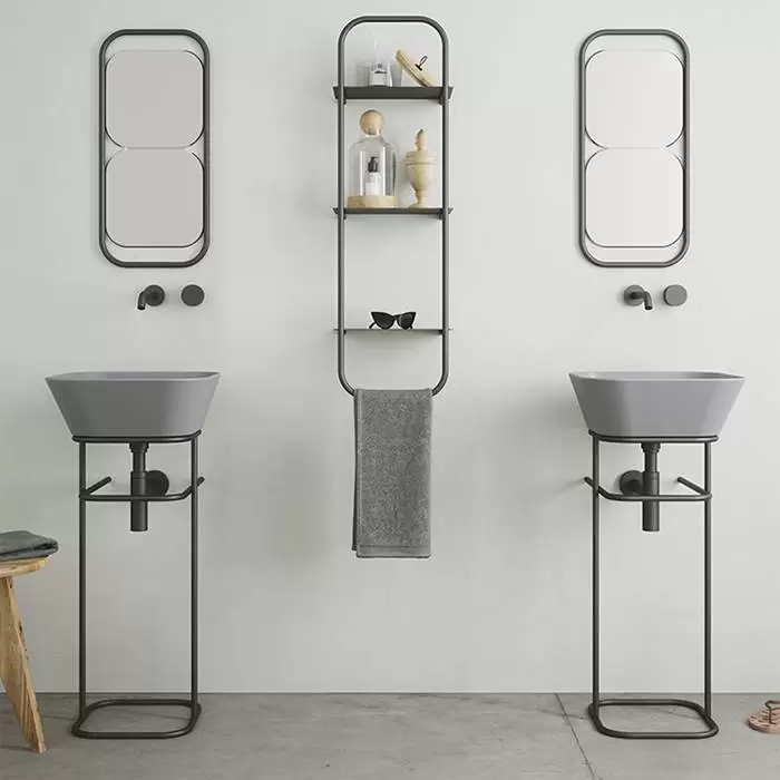 Simas Wave Структура металлическая напольная 30х40х75 см, с раковиной без отв. под смеситель, цвет: черный матовый