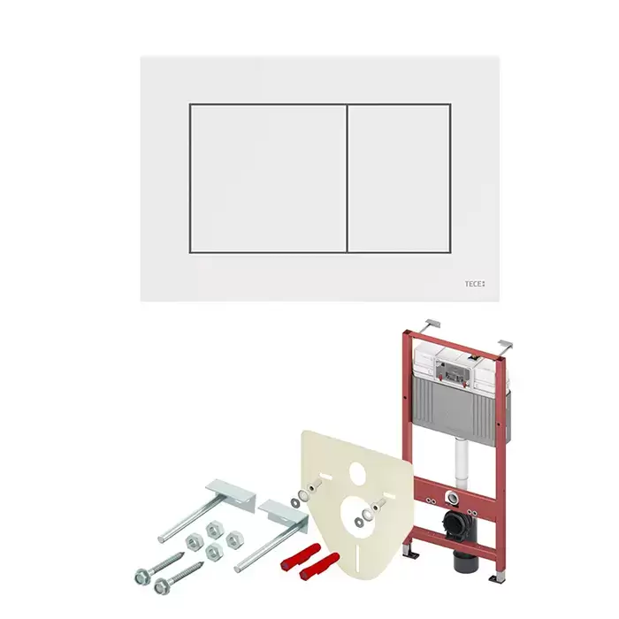 TECE комплект (4в1): инсталляция TECEBase, шпильки к стене, звукоизоляция 9200010 и клавиша Now 9240417 белый матовый
