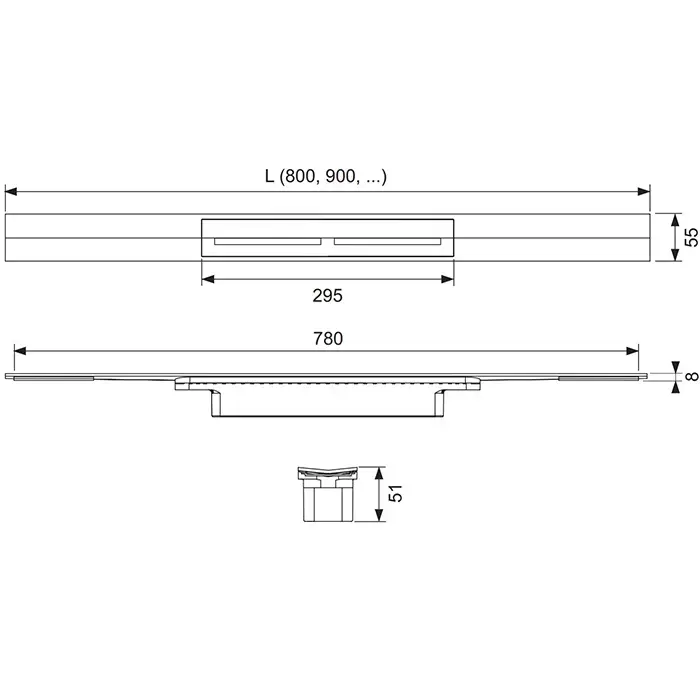 TECEdrainprofile Профиль для душа, 160см, PVD Brushed stainless steel/черный