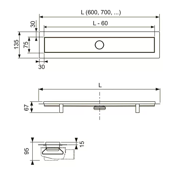 TECElinus Комплект для монтажа дренажного канала 2 в 1: основа для плитки "tile" и панель "steel", 60см., цвет: хром
