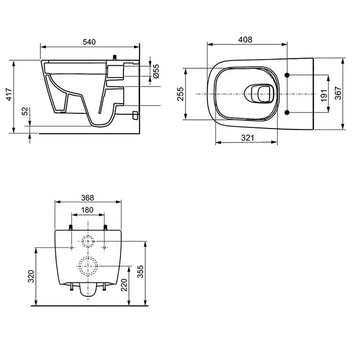 TECEneo Унитаз подвесной 54х36х36см, безободковый, смыв Tornado, с крепежом, цвет: белый