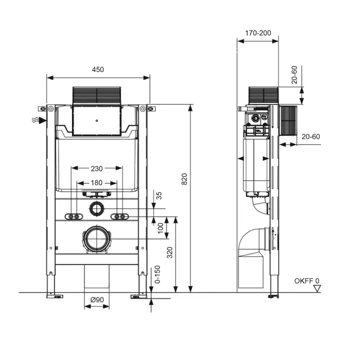 TECEspring profil Система инсталляции для унитаза 82см., c креплением к стене, без панели смыва