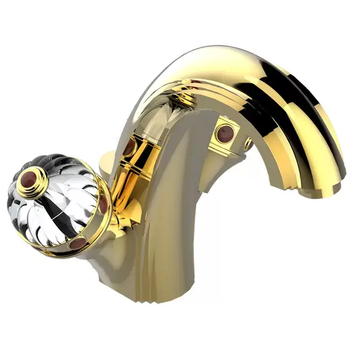 THG Amboise Jaspe rougе Смеситель для раковины на 1 отверстие, с донным клапаном, вставки красная яшма, цвет: полированное золото