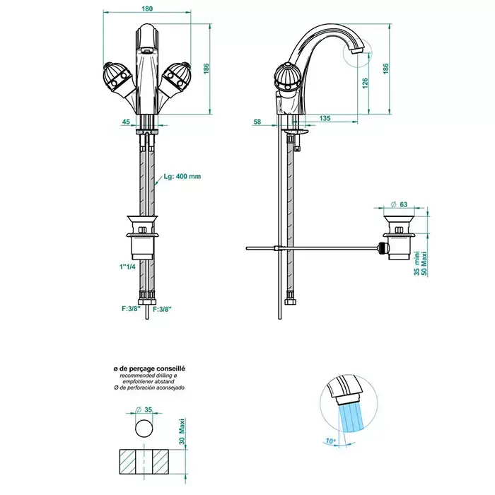 THG Amboise Lapis Lazuli Смеситель для раковины, 1 отв., цвет: золото/лазурит