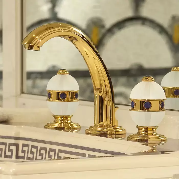 THG Amboise Lapis Lazuli Смеситель для раковины, 3 отв., цвет: золото/лазурит