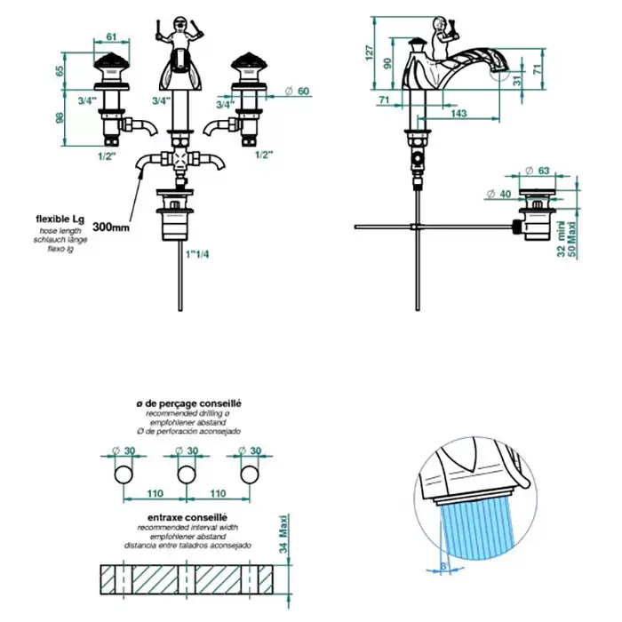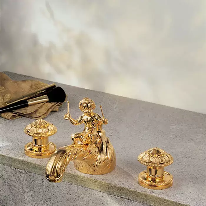 THG Amour De Trianon Смеситель для раковины на 3 отверстия, с донным клапаном, цвет: полированное золото