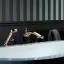 THG BAGATELLE PIERRE NOIRE MANETTES Смеситель для для установки на борт ванны на 4 отверстия, с ручным душем, ручки черные, цвет: полированное золото