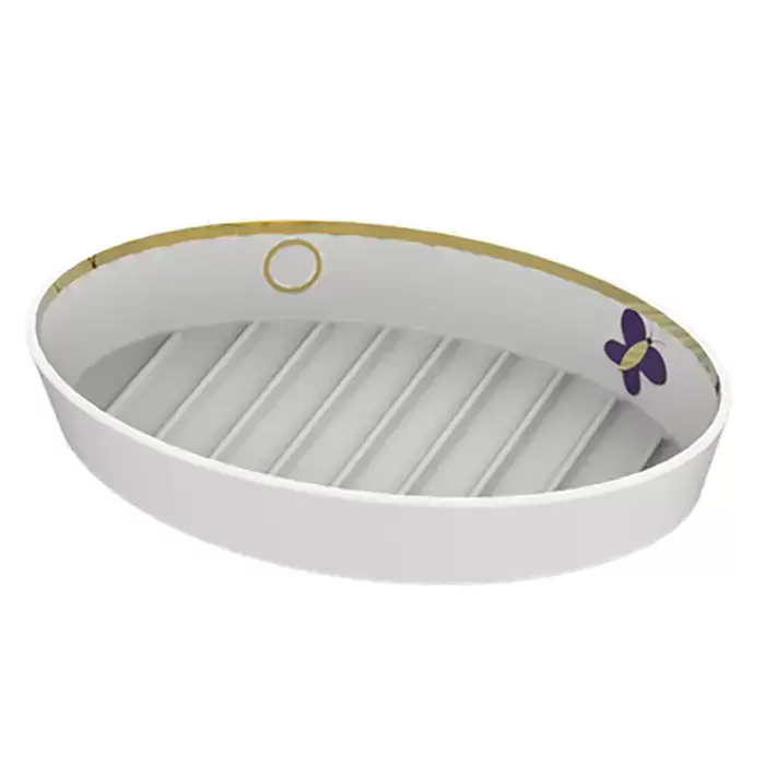 THG CAPUCINE MAUVE DECOR OR Мыльница керамическая, настольная, декор золото/лиловый, цвет: белый