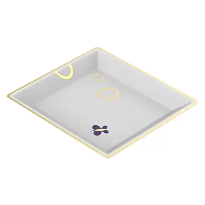 THG CAPUCINE MAUVE DECOR OR Поднос керамический 171х154 мм., настольный, middle size, декор золото/лиловый, цвет: белый