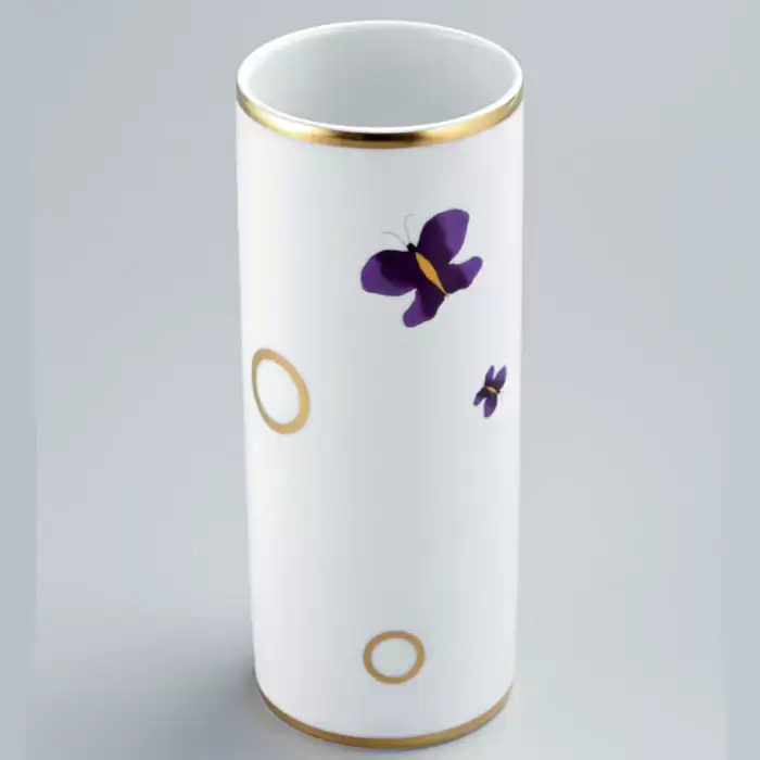 THG CAPUCINE MAUVE DECOR OR Ваза керамическая, настольная, декор золото/лиловый, цвет: белый