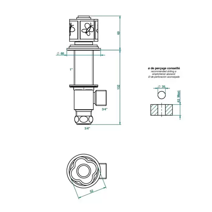 THG CAPUCINE MAUVE DECOR OR Вентиль смесителя для ванны, декор золото/лиловый, цвет: полированное золото